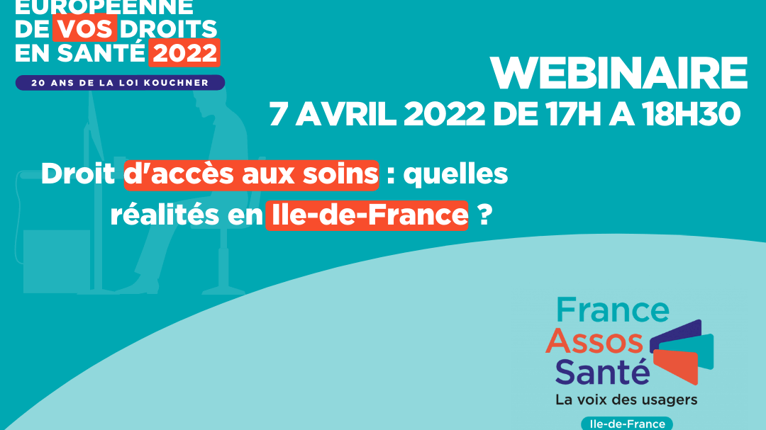 A l’occasion des 20 ans de la loi du 04 Mars 2002 et de la Journée Européenne des Droits en Santé, il importe de le rappeler : l’accès aux soins pour tous constitue un principe de démocratie en santé qu’il faut défendre et promouvoir ! C’est pourquoi France Assos Santé Ile-de-France organise un webinaire sur le sujet le :